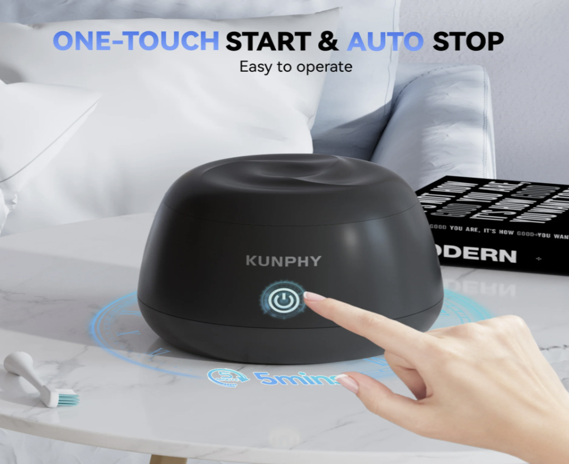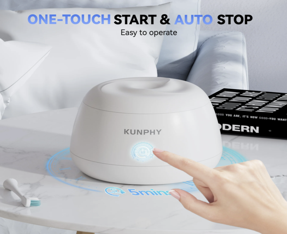 ابدأ بملء الخزان بالماء النظيف، ضع الجهاز المراد تنظيفه، ثم اضغط على زر التشغيل وانتظر انتهاء الدورة.